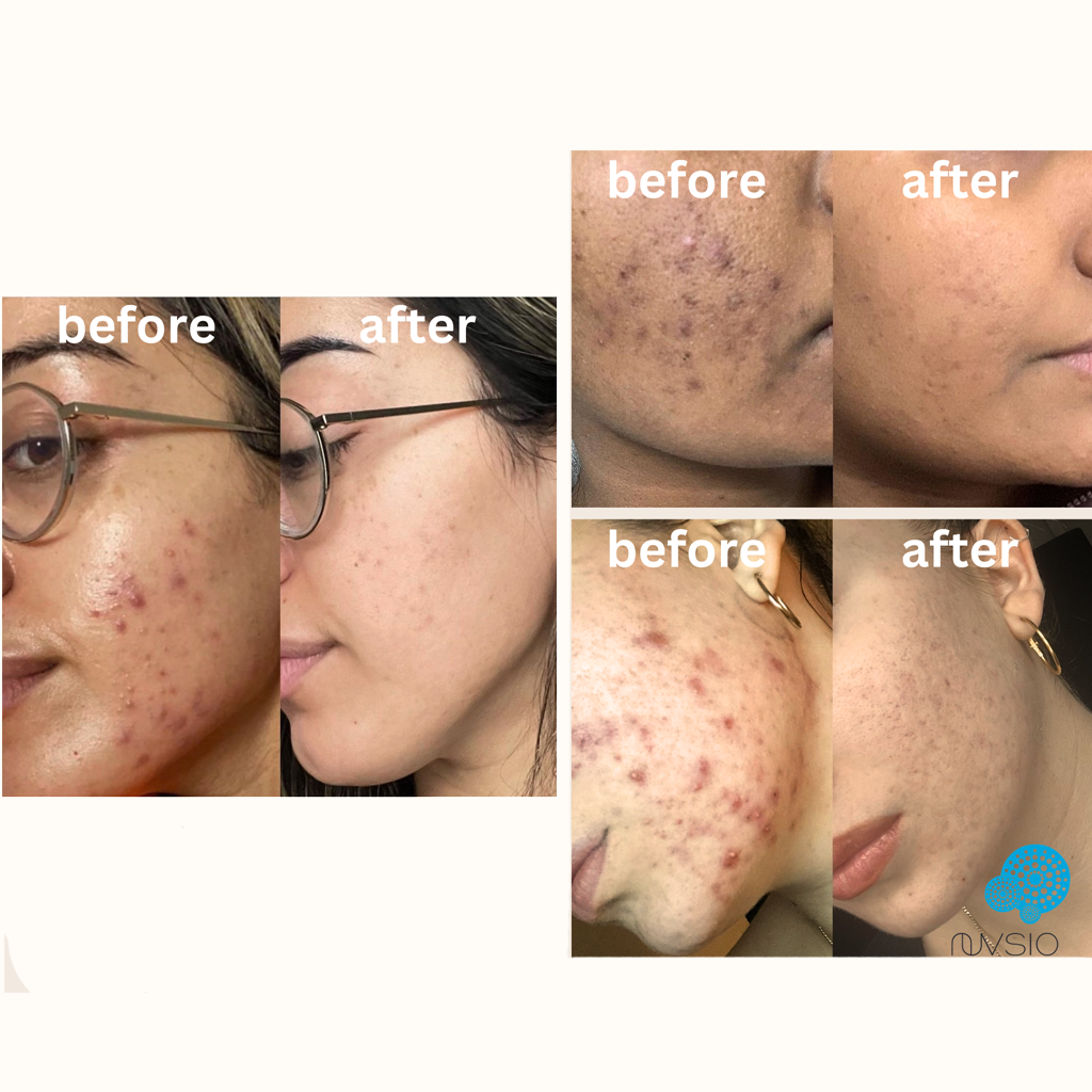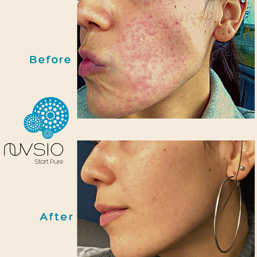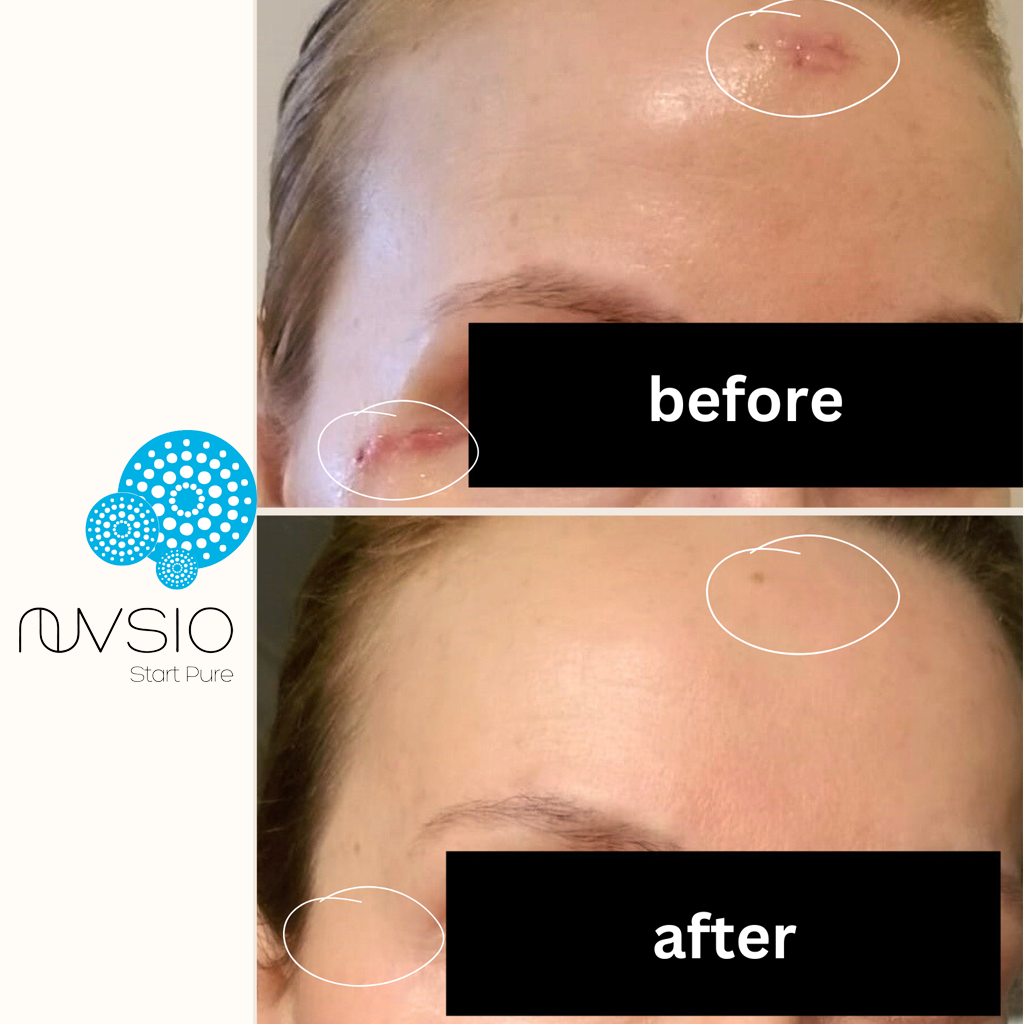 Mineral Enriched Balm Concentrate 2-4x a day on the affected area. She also incorporated the full NuVsio routine for a beautiful and radiant complexion.