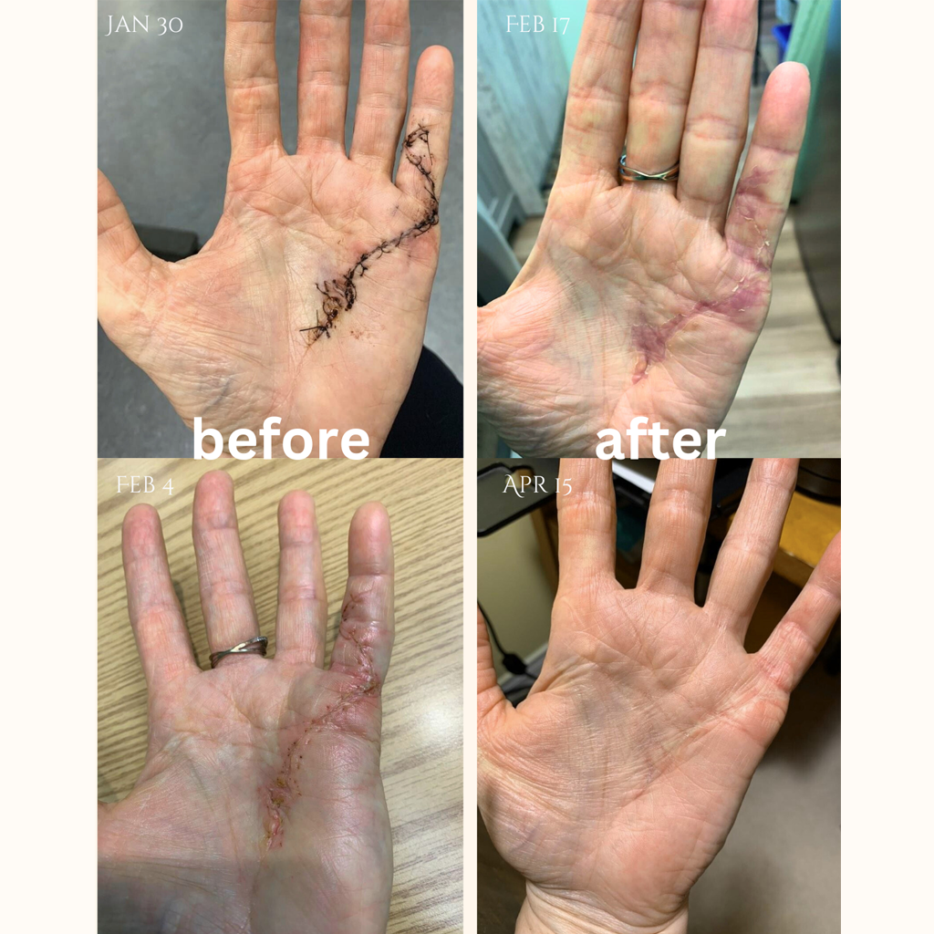 This is the client’s 4th surgery in the past 5 years using the Mineral Enriched Balm Concentrate every time to heal scars.