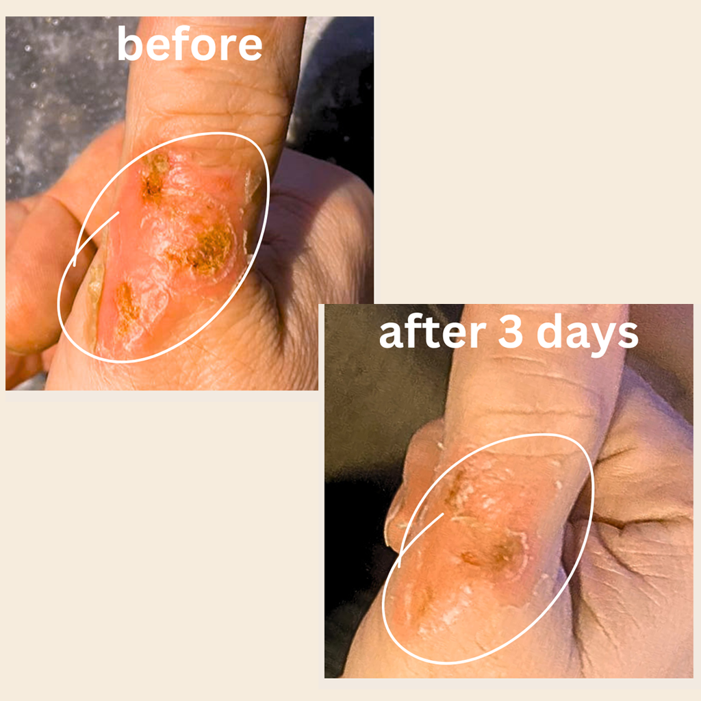 Our client experienced a severe burn on his thumb, and despite trying conventional treatments, he found little relief. Determined to heal, he began applying our Mineral Enriched Eye Balm daily.