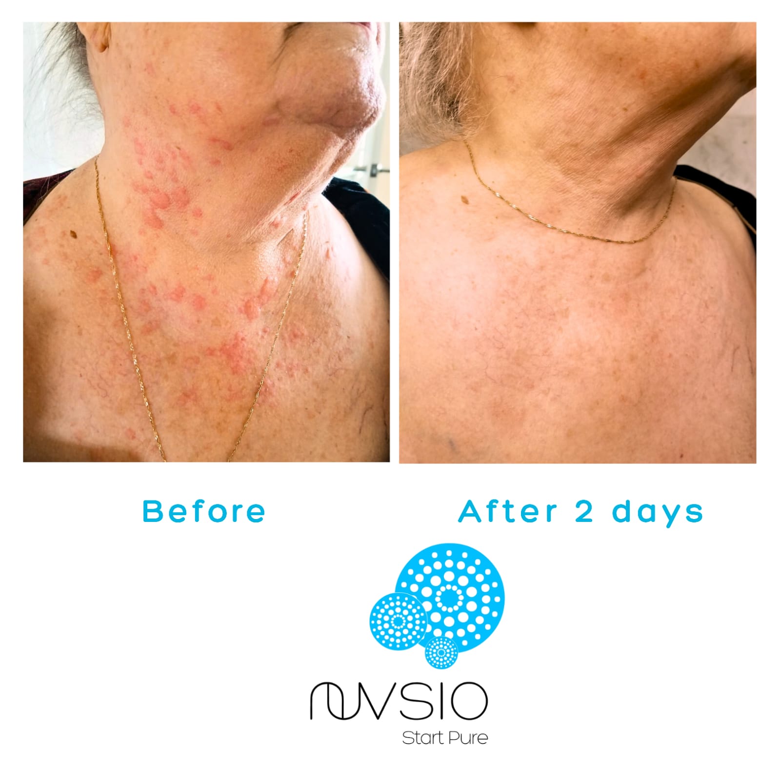 A client in her mid-80s came to us with a persistent, undiagnosed rash on her chest that appeared inflamed and concerning. Rather than turning to harsh topical steroids or prescription treatments, she chose to support her skin with NuVsio’s Mineral Enriched Eye Balm—a gentle yet powerful multipurpose balm.
